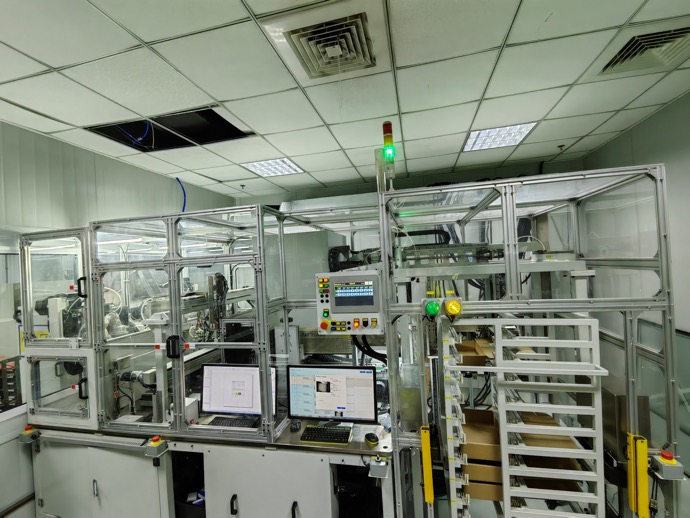畜牧業智能儀自動產線,包含自動上料,銑水口,射頻檢測,激光打碼,視覺檢測,自動裝盒及整個的EMS系統。
